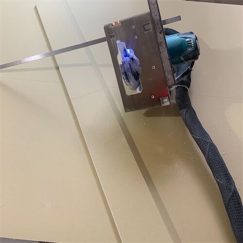 面材加工術のはなし。 面材加工で厄介な作業がある。 割り切れない角度、ごく僅かに斜めに切断する微調整加工。 「ひかり切断」「自在切断」と呼んでいる。 何故厄介かと言うと「一点もの」になるので速度が上がらないから。 斜め切断であっても角度が決まっ…