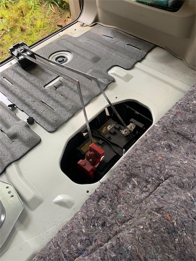 カーバッテリー側の端子には差し金を乗っけているだけ。